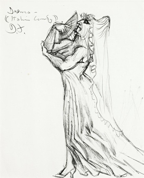 signed with initials and inscribed upper left: Duenna – / ((Italian Comedy)) / D. F.