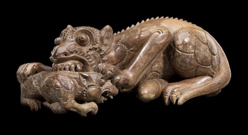 Djodjol was born in the mountain village Taro in the north of the Regency of Gianjiar. The name of the village (Taro) means 'sacred tree' in Balinese. Taro has a rich and ancient heritage. There is proof that the village existed before AD 1000. Djodjol was in his mother's womb when his father was killed during political troubles in the early 1950s. The mother and baby were brought up by concerned neighbours and relatives. Djodjol means forever moving from place to place. It was during this period of moving from house to house that he came under the influence of the famous sculptor Cokot, who lived in the neighbouring village of Jati, and that he began to carve wood. Djodjol cameto Donald Friend's attention on one of the Australian artist's trips to the curio-rich village of Taro. Friend became his sponsor and encouraged his artistic development. Djodjol, with his wife and children, now lives near the central Gianjar village of Batubulan.