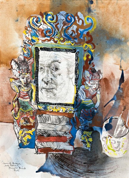 signed and inscribed lower left: Carved Mirror / Self Portrait /Donald Friend / Bali