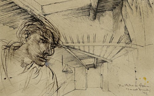 signed, dated and inscribed lower right: The Studio in Florence /Donald Friend / '49