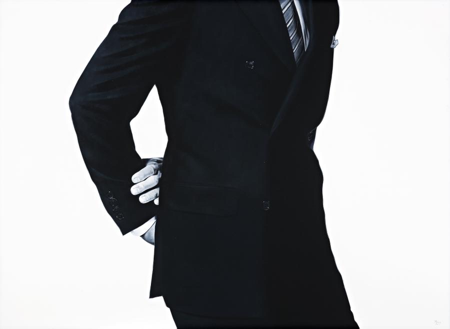 Zavros is an aesthete: he paints beautiful things beautifully. His subjects include fairytale palaces, gardens and follies: upmarket men's fashion, luxury cars and jewellery; Lipizzaner dressage horses, Japanese pedigree onagadori chickens and pretty boys. Zavros's subjects seem interchangeable; they are analogous to one another. For instance, his businessmen in bespoke suits and shiny shoes echo his over bred chickens with their extravagant, impractical tails. His subject's quality and classiness is also mirrored in his impeccable, refined, photo-realistic rendering of them.