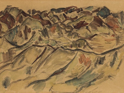 bears inscription verso:'Hills of Greymouth' / M.T. Woollaston / New Zealand / 1937 / Hill Country, Taranaki