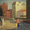 Manly, 1964 has a two-fold interest for today's collector. First, it provides an historic view of Manly in the sixties, looking from the East Esplanade of Manly Beach across to the West Esplanade. The Hotel Manly is no longer standing, the style of the time being captured in the clothing the people wear, the big, flash car, and in the yellow-green of the Sydney bus. Manly is, of course, one of Australia's most popular surf beaches. The first World Surfboard Titles were held there in 1964, the same year this work was painted. Secondly, there are the formal interests and aesthetic appeal of the painting, of form analysed and built up in rich reds, pinks, yellows and blues. As in the central figure group, the focal point of the painting, Wakelin begins with the observed mother and child, and transforms them into a harmony of primary colours. It is by such gifted means that Wakelin translates a transcript of the everyday into an engaging work of art, for he was essentially a formalist, concerned with the structure of his paintings, the monumentality of the buildings in this painting being achieved by investing them with a masterly feeling of volume and weight. Manly received its name from Captain Arthur Phillip of the First Fleet, taken from his reference to the'manly behaviour' of its indigenous people. This apt description lived on, as seen in Wakelin's view of the sixties.