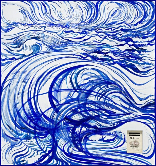 Unveiled at Australian Galleries in 1973, the nine oils and seven large drawings comprising the 'Waves series' betray a number of influences salient throughout Whiteley's entire oeuvre. Whether drawn with an unbelievable sparseness or a surging cacophony of linear swirls, the calligraphic line of the waves both reveals the artist's formidable talent as a draughtsman and, moreover, references his interest in Asian art, paying homage in particular to the celebrated 'Wave' by Hokusai. Similarly, one may discern allusions to his spiritual and artistic mentor, Vincent van Gogh, in whose work Whiteley perceived 'a heightening of reality, in that everything I looked at took on an intensity - an expandingness'.3 With its elegance and inspired simplicity, the present To Repeat Without Repeating, 1973 evokes precisely this kind of intense, meditative response that Whiteley had so admired - the scale of the work and turbulent subject inviting the viewer into a lyrical contemplation of colour and line. Interestingly, if the association between Whiteley and the ultramarine blue of his sumptuous Lavender Bay views finds its genesis here, the swirling, highly emotive movement could not be further from the flat expanses of sheer colour that would follow.