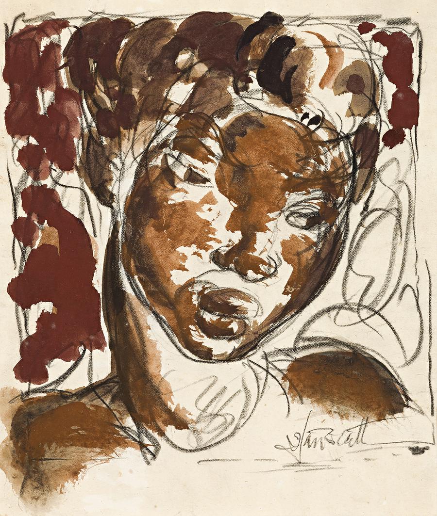 Ian Fairweather's drawings are so highly thought of that, in 1997, Canberra's National Gallery of Australia devoted an entire exhibition to them. Sketch Head, 1941, with its wonderful freedom of line and overall visual excitement, was among them. The exhibition's curator, Tim Fisher, thought so highly of Sketch Head that he singled it out as one of 'four of the most beautiful works in the exhibition'.1 Painted in Calcutta, India, this exceptional group of works includes Landlady and Daughter, 1941 (Deutscher and Hackett April 2013 lot 13), and the Chinese landscapes, Lake Hangchow, 1941 (National Gallery of Australia), and Bridge in Soochow (Sussan Corporation Collection, Melbourne). All were recollections of his recent and more distant past, Sketch Head and Landlady and Daughter being of the time he spent at Alligator Creek, Cairns in 1939 sharing a boathouse with the Aboriginal family.
