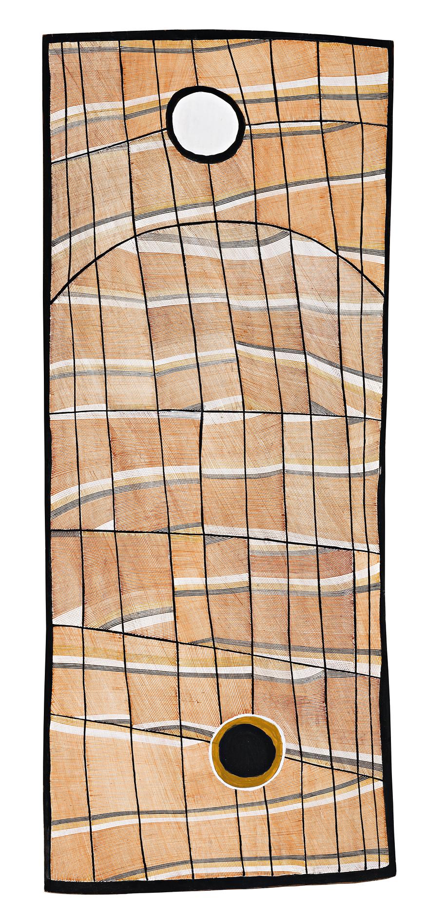 This work refers to the billabong site of Milmilngkan, one of Mawurndjul's seasonal camps where he has a house there on the edge of a small creek.