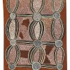 The horizontal straight lines are a stylised pattern for the journey travelling motif, and implies people foraging and hunting, crossing a landscape region in the artist's homeland. The pattern of circles, arcs and straight lines is a mind-map of the artist's place or homeland, known to him in intimate detail but here generalised without any sacred/ secret signs or symbols. The dotting represents the grass, earth and bush tucker in sandhills, and simultaneously the prepared ground for ceremony of this dreaming story.'