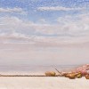 Encapsulating Storrier's enduring interest in the tension between the classical and romantic in his practice, between the disciplined order of his decorative surfaces and the submerged symbolic implications of his subject, thus the still life is here removed from any immediate domestic connotations and placed rather within the more dramatic 'stage set' of the landscape where the metaphoric narrative may unfold. As objects in their own right, certainly the bananas and haunch of raw meat are palpable, sensuous and exquisitely beautiful to paint. Yet more poignantly, they also bear potent allegorical qualities, as Storrier knows well from his travels to Egypt and keen interest in the iconography of the ancients. Food, and especially fruit, has long been associated with fecundity, abundance and prosperity while the meat suggests sacrifice and mortality. Like the best of his oeuvre, here life is once again juxtaposed with death to create powerful allusions to evolution, the passing of time and the grandeur of decay in the same vein as the traditional vanitas still life. As Storrier himself muses, '... there is a relationship between fecundity and mortality ... These are primal poetic qualities that do not change in terms of the human spirit.'2