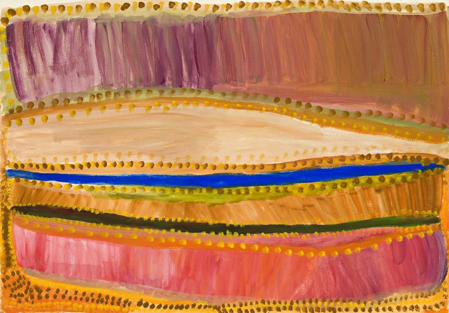 This work is accompanied by a copy of a certificate of authenticity from Short Street Gallery which states: 'This is my mother's country. There are plenty of trees on one side of this waterhole. This is Kirrwirrjila (permanent waterhole). It has plenty of water. In the country on the other side of the tali (sandhill) there is no water at all. We would camp here along the tali, close to the jila.'