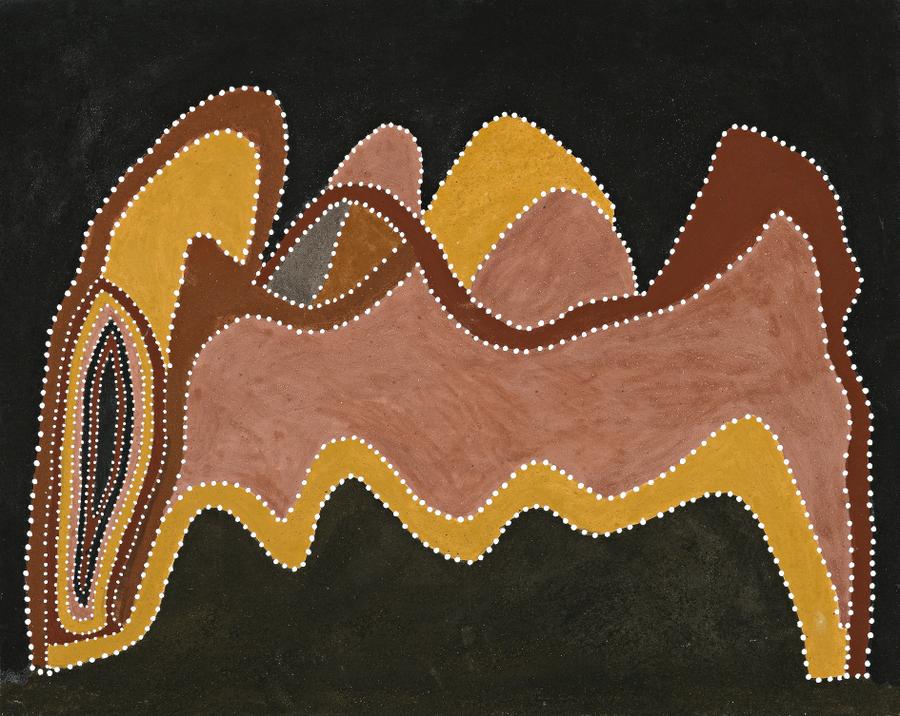 This work is accompanied by a certificate of authenticity from Short Street Gallery which states: 'This country is near Pelican Hole on Bedford Downs. In the Ngarrangkarni (dreaming) two women met here for wynan (trade). The trade would occur between Gija people and woorla people from country to the north. There were two main trade routes across the Warman region, from the north through to the west and from the south to the north.