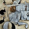 The Farmyard paintings offer a fascinating insight into the artist's development. The twisting and distorting of the forms hint at what was to come - even a goat's ability to climb and stand atop the farmyard detritus introduces the notion of contrary compositional structures. Similarly when the dams or waterholes first appeared in Robinson farmyard paintings, through the reflection of the surrounding animals, trees and clouds the water became the pictorial device that allowed Robinson to break from the convention of the horizontal horizon and move it to any part of the picture plane.