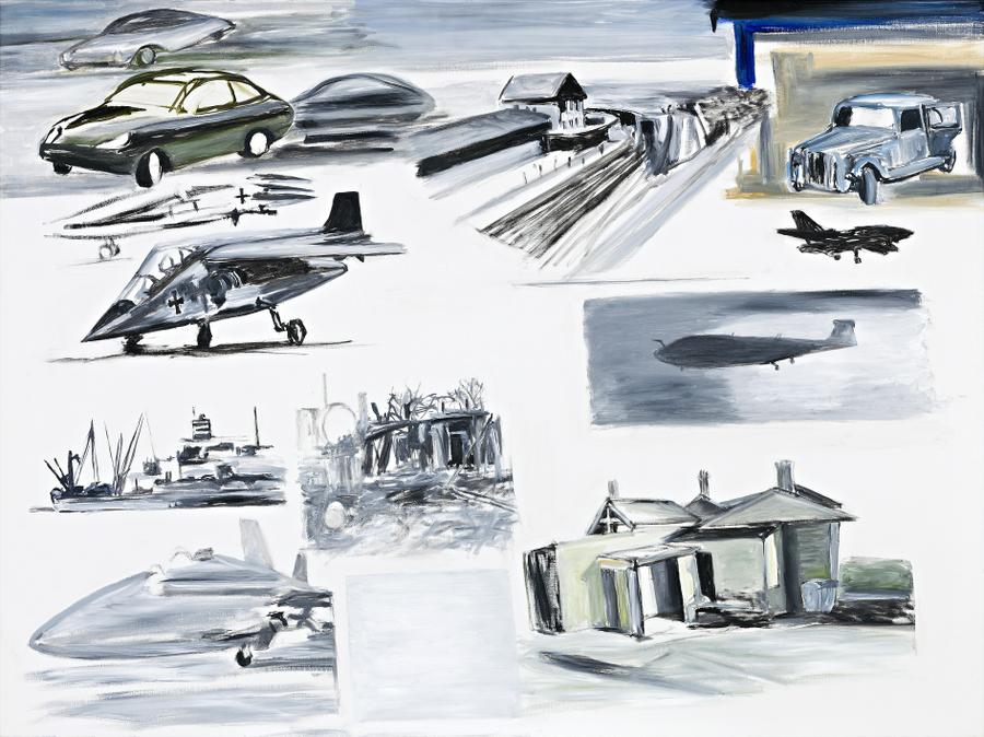 Inextricably linked is Whisson's fervent belief that an artist 'must continually reinvent himself if he is to remain creatively fresh, thereby avoiding the pattern of a brief flowering and slow decline that has been the fate of so many well-known Australian painters.'2 Rejecting notions of skill or style 'that close one down', he reiterates that he has spent his entire life trying to 'avoid good technique' and to maintain 'a blank mind for a blank canvas' Encapsulating this pursuit of an art that is ever-evolving and far from predictable is the present composition which belongs to the surprisingly naturalistic series 'From the Newspapers', executed between 1998 and 2006. Featuring snapshots sourced from the Italian left-wing newspaper Il Manifesto, the work is punctuated with reportage-like images of battleships, helicopters and other emblems of a world at war. Indeed, while most commentators have tended to focus upon the expressive and formalistic peculiarities of his achievement, works such as From the Newspapers No. 2, 1998 powerfully highlight another dimension to Whisson's art - its connection with contemporary conditions and perceptions, inspired by the artist's enduring sense of deep social and political engagement with the world in which he lives.