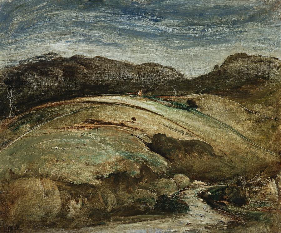 While Rees's images often dwell on Olympian heights, he opens them up for all to enjoy through his mastery of the shared experience and the humanism with which they areimbued. The secluded moments, as in our painting, are just as special. Only a work of outstanding quality could get away with such a bland title as 'Landscape'. But the artist's intentions are clear and engaging, avoiding external associations, of location or narrative, to concentrate on the captured beauty of the vision. The swell of the land speaks of promise and plenitude, the earth watered by the stream flowing below as all is bathed in an atmosphere of pastoral peace. Technique and imagery harmonise as the easy gesture of the brush celebrates the broad sweep of the land. Drawn to the rhythms of the landscape, Rees commented, 'Subconsciously I've felt the hills have made me think of the feminine form - rhythm associated with figure and landscape.'3 The landscapes of Gerringong, Orange and Bathurst, had a special appeal for Rees, his wife Marjory having come from the latter. One recalls the earlier Evening on the Bathurst Hills, 1936 (Art Gallery of New South Wales, Sydney), September Landscape, Orange, 1944 (formerly Mrs John Baillieu, Melbourne), and Evening Landscape, Gerringong, 1946 (Art Gallery of New South Wales), all three being in Rees's 1969 retrospective. Together with Landscape, 1945, each is a work of unique beauty. Though inspired by the Australian scene, they are universal in their appeal, each possessing an inner life springing from the translation of the descriptive into the creative, enveloped by an atmosphere of gentle lyricism.