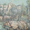 South Coast Facades is quintessentially Lloyd Rees, the projecting foreground rocks and low viewpoint adding to the majesty of the scene, of towering cliffs as ancient as time, and gums noble, tall and straight. It has a wonderful sense of atmosphere and feeling of light, which characterise his best paintings of the sixties. To this is added the richness of the paint, broadly and freely applied, in harmony with the grand manner of his presentation of heroic nature.3 Detailed in imagery and richly textured, the entire surface has been deftly worked with brushes and palette knife.