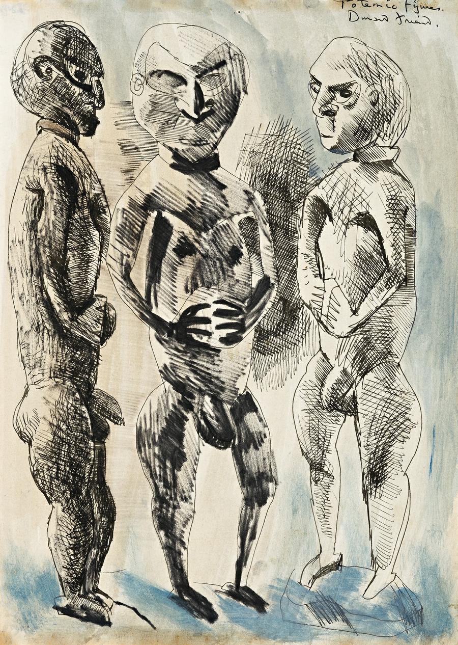 signed and inscribed upper right: Totemic figures. / Donald Friend.