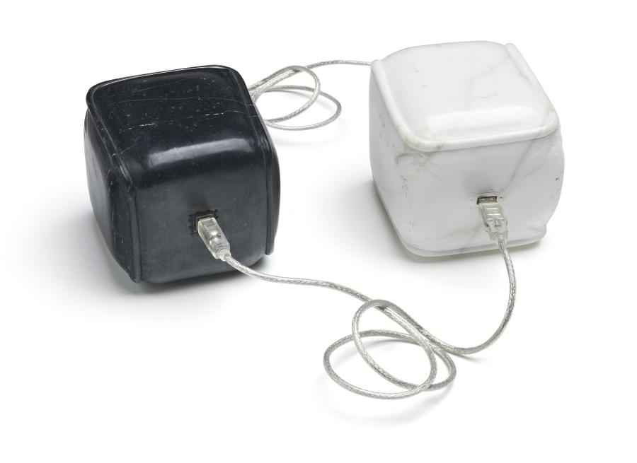 black marble, white marble with USB cables