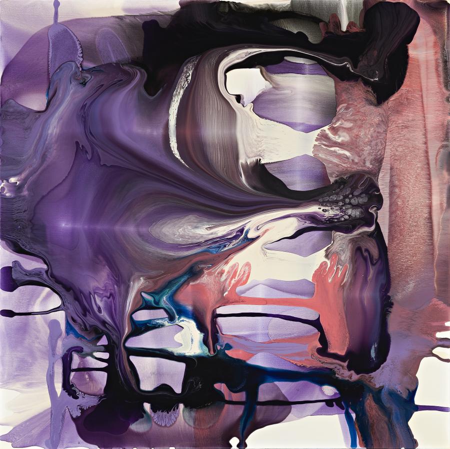 Typically featuring glistening, marbled flows and ponderous slides, slow-creeping bleeds and animated squiggles, these huge plasma-like abstractions possess a remarkable ability to completely absorb the viewer's consciousness and thus provoke powerful emotional responses akin to the medium of film. Yet despite their inordinately specific titles and the swirling tides of tinted varnish which seem to convey the forces of nature in a manner reminiscent of Romantic painting, Frank deliberately eschews any reference to the literal - his works are neither real nor imagined. Rather, each abstraction 'creates itself', evolving over time through the movement and chemical reactions between layers of strident, pulsating varnish in its molten liquid form ('a living entity'). Indeed, for Frank, the blank white canvas is never a pristine ground that must be filled, but 'a black space' where the final outcome is 'forced upon the Painting by the vagaries of its own Nature and makeup: its environment and 'material' personality determine its image, its future, its relations within the world.'1