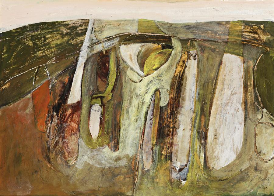 signed and inscribed verso: “THE HILL” / FOR S.A. / Brett Whiteley