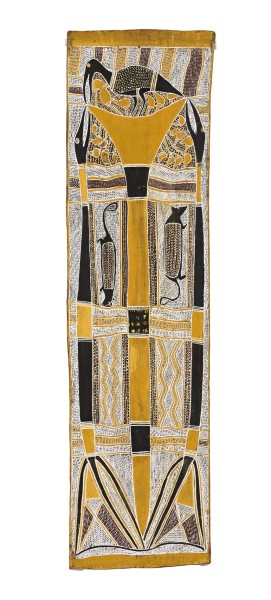 Aratjara: Art of the First Australians, Kunstsammlung Nordrhein-Westfalen, Dusseldorf, West Germany, 24 April – 4 July 1993; Hayward Gallery, London, 23 July – 10 October 1993; Louisiana Museum of Modern Art, Humlebaek, Denmark, 11 February – 23 May 1994; National Gallery of Victoria, Melbourne, 23 June – 15 August 1994 (label attached verso)