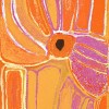 This painting is accompanied by a certificate of authenticity from Warlayirti Artists which states: 'Eubena has painted some country along the middle stretches of the Canning Stock Route, which is her traditional country. The country she has painted here is called Tjirti, named for the prominent rockhole shown in the centre of the painting. The smaller, heavily worked shapes nearby are the parmarr, or rocky outcrops and hills of the area, while the tali, or sand dunes that dominate the area are shown over the remainder of the painting. This is the country in which Eubena's grandparents passed away and were buried.'