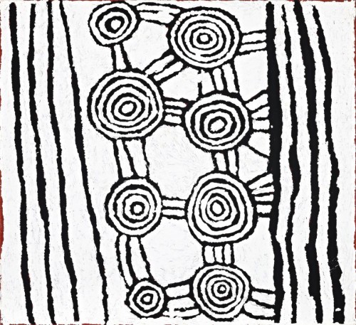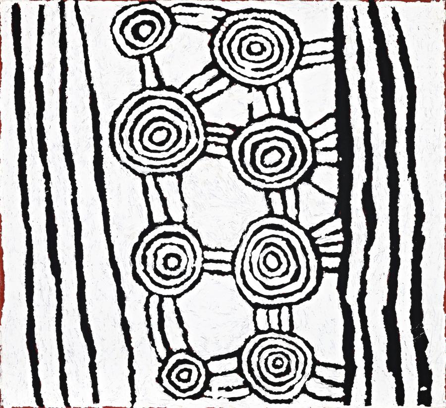 inscribed verso: artist's name, size, Papunya Tula Artists cat. PP981067 and Alcaston Gallery cat. AK4991
