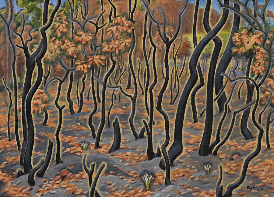 inscribed verso: WEAVER HAWKINS / AFTER THE BUSHFIRE