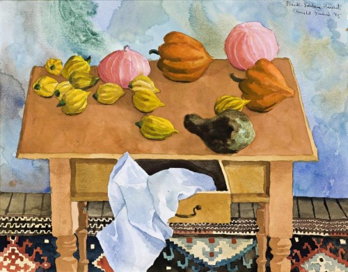 signed, dated and titled upper right: Back-Garden Harvest. / Donald Friend '85
