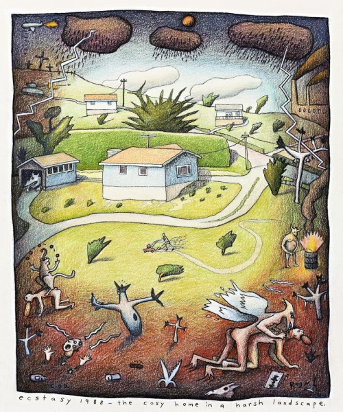 titled lower centre: ecstasy 1988 – the cosy home in a harsh landscape.