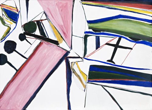 This pivotal change was, to begin with, mainly practical - canvas could be much more easily shipped back to his galleries in Australia - but it irrevocably changed the work. Gone was the hard surface of board upon which forms seemed to sit quite solidly, to having to deal with a material that did not offer the same resistance. Now the space between objects and motifs became as important as the figures themselves and the colours and form started to float and take off - as typified by his series of paintings, collectively known as the Flag paintings, roughly contemporaneous with the Fiumicino.