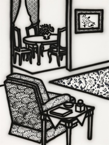 After much debate, it was intimacy that won the day. For all the wonders Arkley performed with the image of the suburban home, there was something remarkably potent about entering the home, being invited inside, perhaps, given the decor, for a soothing cup of tea? For without doubt we all recognised this interior, we all had or have older parents, grandparents or an auntie who did indeed live exactly here, complete with the stenciled bird picture on the wall and the flowers on the table.