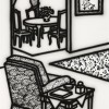 As with many of his key motifs, Arkley would go on to further explore interiors. The structural approach taken with Letter-Box Home would culminate in a major component of The Home Show at the Venice Biennale in 1999. As part of the massive 17 panel Fabricated Rooms (1997-99), which he exhibited in Venice, he executed a lounge and dining setting that bears a distinct correlation with Letter-Box Home.
