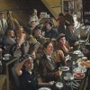 Snack Bar is a classic of Badham's style and shows his fascination with groups of people in ordinary situations. In a remarkably modest space, he has presented some fourteen recognisable figures, each clearly portrayed as a type and an individual. Visiting American servicemen and women are at home in the Hasty Tasty snack bar in Kings Cross, sitting happily among the mixed bunch of Aussies from 'civvy street'. Badham does provide gentle social comment, with a black American GI keeping close company with a local girl, while the well-satisfied businessmen happily hoe into the simple fare. Rationing might have been in force, but nobody goes hungry in the Hasty Tasty. The venue itself was woven into the rich tapestry of Sydney life - from its hosting of the nation's first AA meetings to its cameo role in They're a Weird Mob, the doors never closed on the denizens of the Cross. The colour is elegant and restrained, symbolic perhaps of the straightened circumstances of war, in a part of the city thronging with servicemen on leave from the Naval dockyards at the bottom of the hill. Snack Bar featured in the Badham retrospective mounted by the S.H Ervin Gallery, Sydney in 1987 and stands alongside the record-breaking Travellers as a major work in his oeuvre.