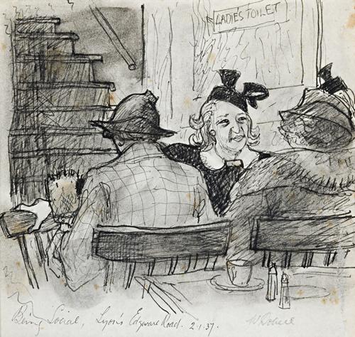 inscribed lower left: Being Social, Lyon's Edgeware Road 2.1.37