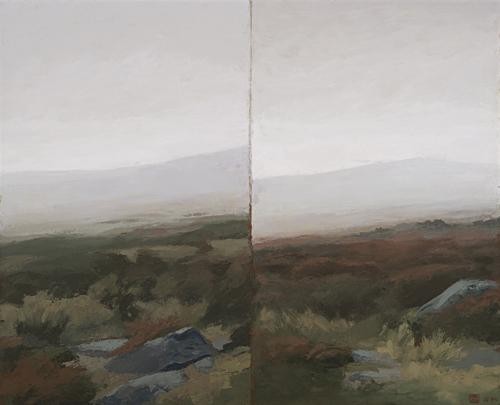 '...the horizon line separates the earth-toned solid matter of the terrain with the cool blue distant incorporeal space of clouds and sky; the division if you like between mind and matter, the corporeal and the spiritual. This is nature pure and simple; it is neither colonised, romanticised not aggrandised, but is sturdy and enduring, something which Wolfhagen's paintings insist remains lodged in human consciousness, in spite of more than a century of our progressive alienation from the natural world.'3
