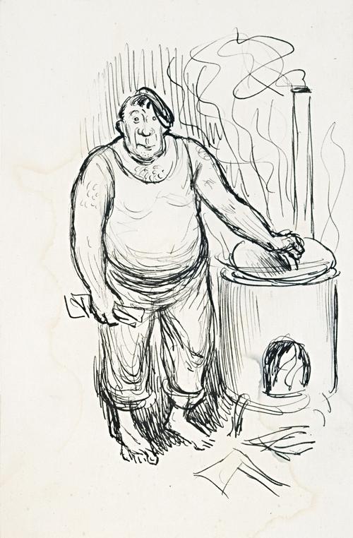 various subjects including a sketch for The Billy Boy 1943; New Guinea native studies; and a self-portrait