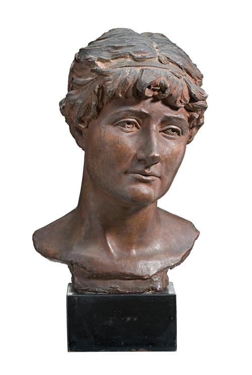 The story of Pygmalion from classical legend has had a special appeal for sculptors as the tale of a statue so beautiful that it came to life through Aphrodite's response to the entreaties of its creator. Its appeal throughout the centuries has inspired poets, painters, playwrights, sculptors and musicians as diverse as Ovid, Dryden, Goya, Rodin, Donizetti and Shaw, its most recent incarnation as My Fair Lady. With the 1883 revival at London's Lyceum Theatre of Pygmalion and Galatea by W. S. Gilbert, of operetta fame, the highly talented American actress Mary Anderson (1859-1940) thrilled her London audiences with one of her finest performances, and Head of a Woman has long been considered a remarkable likeness of her.
