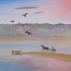 Strong and lyrical, the present Jinker on the Sandbank, Shoalhaven, c.1986, illustrates well the positive, dynamic spirit that distinguishes Boyd's later treatment of the subject from his earlier investigations. The horse and rider now charge at full gallop towards the water with obvious determination, while in the distance, the warm glow of the pale pink evening sky and twinkling lights from the homestead nestled safely in the hills suggest good times ahead. With the mirror-like expanse of water and colourful afterglow paying homage to his artistic predecessors such as Von Guerard and Piguenit, indeed the work is a poignant reminder of how Boyd, comfortable once more with the vast open spaces of the Australian landscape, ultimately did tame his wilderness '...what was unfamiliar became familiar, what was menacing became friendly, what was awesome became intimate.'5