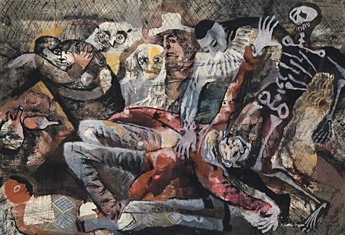 ink, watercolour and gouache on paper on board
