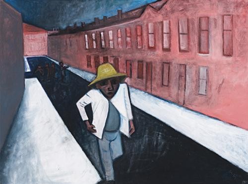 The autobiographical runs through most artists' work. This is especially so with Dickerson, whose forthright paintings abound with personal references. Born in Hurstville, he was a city kid, and the city that was his playground, its empty lanes, back alleys, and terraces became the settings for many of his paintings. There was boxing, the punter and racing pictures, family tribulations with very empty streets, of lawyers, and then landscapes for happier times. As art critic Elwyn Lynn once noted, 'His painting comes from a hard scrutiny of life, without the slightest desire to flatter, reform, or condemn.'2 Throughout his work, however, the most consistent and important element is isolation, which takes on a metaphorical role. Creativity requires it - the painter alone in the studio before the empty canvas, the writer at the computer, the musician, the poet - each needs to be on his own to produce. As in this painting, Dickerson's early art reveals an enjoyment of solitude, which, when combined with his aesthetics of unpretentious directness, provides food for the mind as well as the eye.