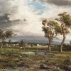 For many colonial artists of the latter half of the nineteenth century, the appeal of the Australian landscape lay in its panoramic splendour and awe-inspiring beauty. Typical of this inclination was Eugène vonGuerard who saw the hand of the creator in nature's grandeur, adopting the theme so popular to Romantics of man's infinitesimal role in the grand scheme of things. With his French-leaning Swiss background, Louis Buvelot's approach was entirely different, nurtured by the Barbizon School and its transcripts of nature in which the civilising hand of man is always present. While Von Guerard aesthetic interests were the sublime, Buvelot was a master of the homely scene, those peaceful moments of the day in gentle transition to evening, of ducks by the farmyard pond, folk wending homeward as friendly smoke rises from the homestead chimney. In his day, Buvelot replaced Von Guerard as Melbourne's most popular artist. The young Heidelberg painters Tom Roberts, Frederick McCubbin and Arthur Streeton saw him as a father figure in the development of landscape painting. On his death in 1888 an era came to an end, popular sentiment being so great that the National Gallery of Victoria renamed their Grosvenor Gallery the Buvelot Gallery in his honour.