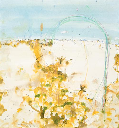 signed dated and inscribed with title lower left: Wattles and Rainbow / John Olsen / 96