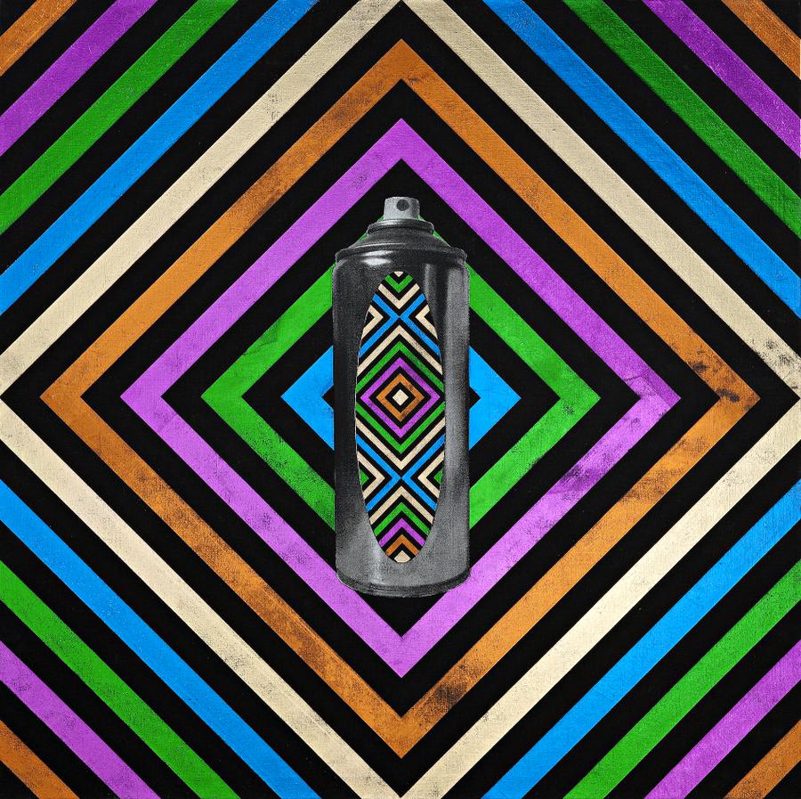 hand-pressed metallic textile foil, screenprint and synthetic polymer paint on Belgian linen