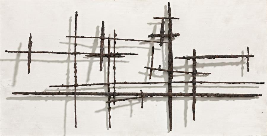 bronze mounted on painted composition board