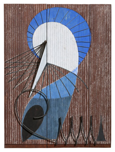 'During 1955-56 Taylor began not only to make sculpture but also to include three-dimensional objects of his own design as subject matter in his paintings. His first solo exhibition to include both paintings and sculpture was organised in 1957. The sculptures reveal his initial attempts at integrating his background of assembling objects from multiple parts with the magnitude of forms found in the bush: