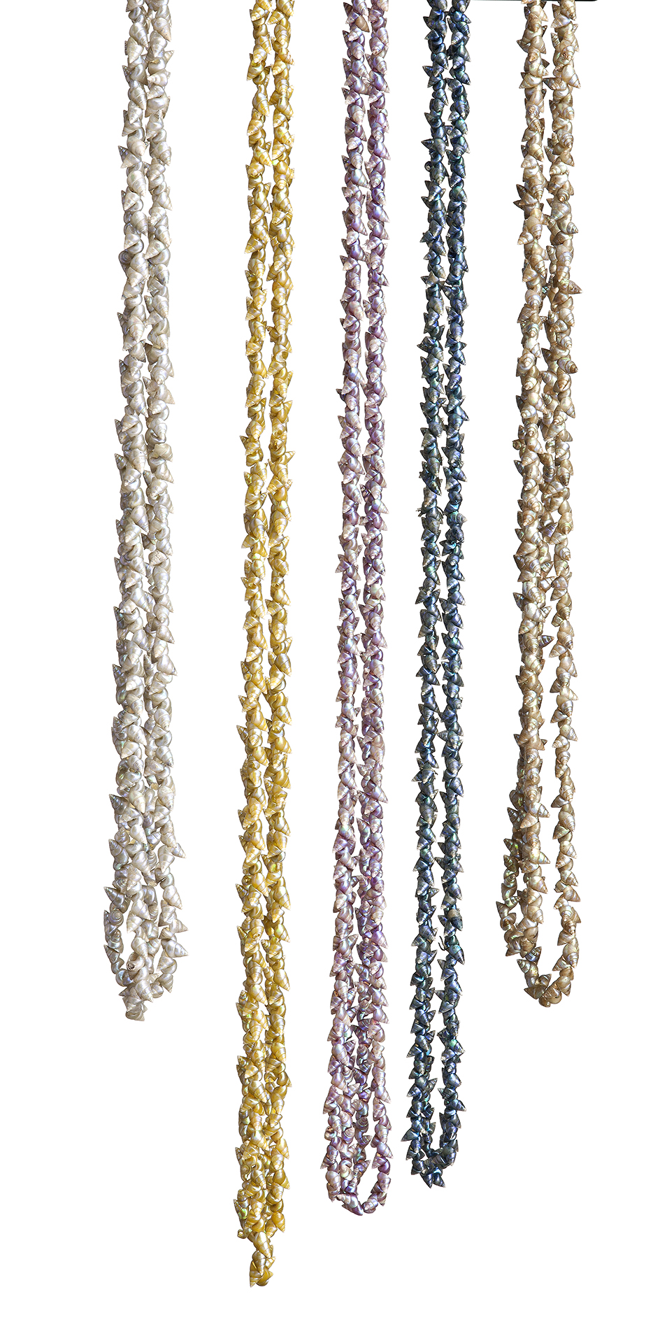 For another example see: Kleinert, S. and Neale, M., Aboriginal Art and Culture, Oxford University Press, New York, 2000 p. 698: Kleinert notes ‘Ideally the necklace makers like to collect maireener shells, a common shell used in the necklaces, on a low spring tide as most are gathered by hand while walking knee deep in sea water... the shells then undergo a series of cleaning, drying and polishing before they are laid out to dry, once dry they are pierced with a sharp tool. Traditionally the women threaded the shells together using a length of double strength thread which is doubled again for even more strength’.