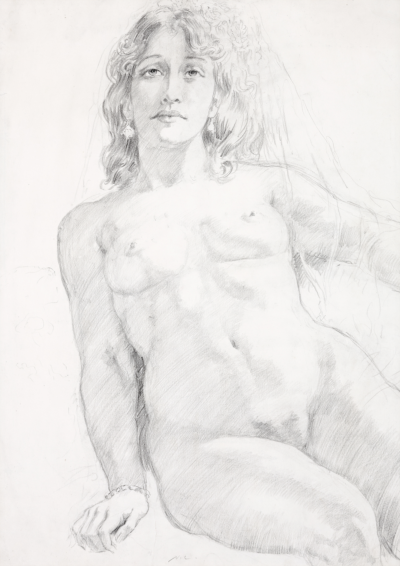 MODEL WEARING A BRACELET AND VEIL, c.1936
