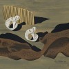 A master of play with the visual point of view, he exploited the accidental juxtaposition of images and ideas, combining strong abstract design with the enigmatic. It all comes together in Bass and Flinders, 1943. Surrealism, wit and design combine with his obvious delight in the found objects of shells and other detritus from the beach at Flinders on Western Port Bay, reassembled with a brilliant economy of means. The title refers, of course, to the adventurous navigators George Bass and Matthew Flinders, who, travelling in small boats, discovered Bass Straight, and Western Port where lies present day Flinders Beach. Thake inscribed on the backboard of his gouache, 'Painted from objects found on Flinders Beach.' His discovery was not quite in the same epic league! In looking at this work, one is reminded of Thake enthusiast, Elizabeth Summons' observation that: 'perceiving and seeing the ambiguities resolve is its own reward.'1