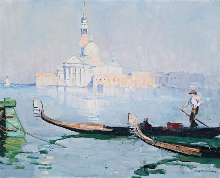 When Arthur Streeton exhibited a selection of his paintings of Venice at the Alpine Club, London in 1909, the art critic for the Observer praised the way in which - 'Mr Streeton has caught the opalescence and glitter of the Venetian canals and marble palaces in moments of bright sunshine as few artists have done before him. What is more the Australian painter has not confined himself to a mere architectural record, but makes us feel that Venice has retained in our days a certain something of the spirit which in the eighteenth century made it the pleasure ground of Europe.'1 His enthusiasm was generated by such paintings as Venice, Bride of the Sea, Piazza San Marco, Sunset over San Giorgio, and The Palace of the Doges. These major works were critically acclaimed and readily appreciated by leading private collectors. The regard in which they were and are held is shown by their former collectors, and the collections in which they are found today - Sir Baldwin Spencer, Howard Hinton; Dr. D.R. Sheumack; and Sir Edward Hayward and family of Adelaide's Carrick Hill; to the National Gallery of Victoria; National Gallery of Australia; Art Gallery of New South Wales; and the University of Melbourne. Streeton's dramatic use of light to capture Venice in all its shimmering, magical beauty place these paintings among his best.