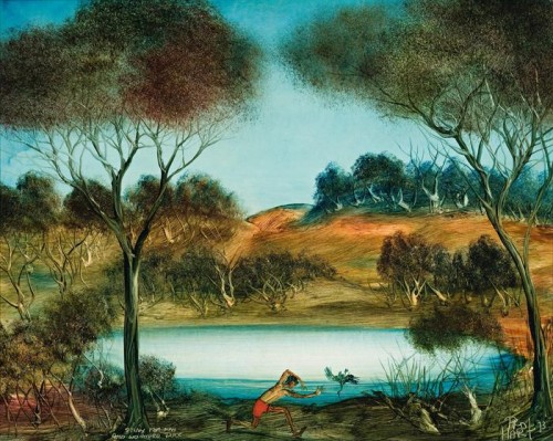 inscribed with title lower left: “STUDY FOR MAN / AND WOUNDED DUCK”