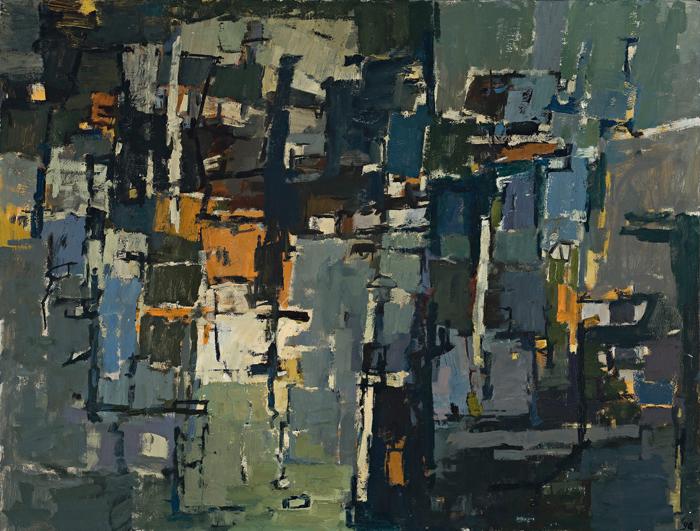 The spring of 1956 saw her on the move again, visiting Switzerland, Germany, France, Belgium, the Netherlands, Austria, and briefly Sydney, where the exhibition Direction 1 was about to have its impact on an Australian public unfamiliar with abstract art. Audette's paintings of 1956-58 include a series on the theme of 'construction', several being in private collections in Europe and the USA. Related major works in Australia include The Grey Wall with Lines, and Allegro Serata, both of 1957 and in the Queensland Art Gallery. Unlike the Australianism of, say John Olsen, her fellow student under John Passmore, Audette's art is essentially international, of American and European influences received first hand and evolving in her own singular and painterly manner. Her sophisticated and thoughtfully orchestrated paintings, such as this fine early example, express the nuances of tone and colour akin to that of a considered piece of music. Untitled by Yvonne Audette is one of those special vintage works from the mid 1950s when she was painting at her best. In Australia, in recent years, her significance as an outstanding artist has been increasingly recognised by special survey exhibitions at the Queensland Art Gallery in 1999, Heide Museum of Modern Art in 2000, and the National Gallery of Victoria in 2007-8.